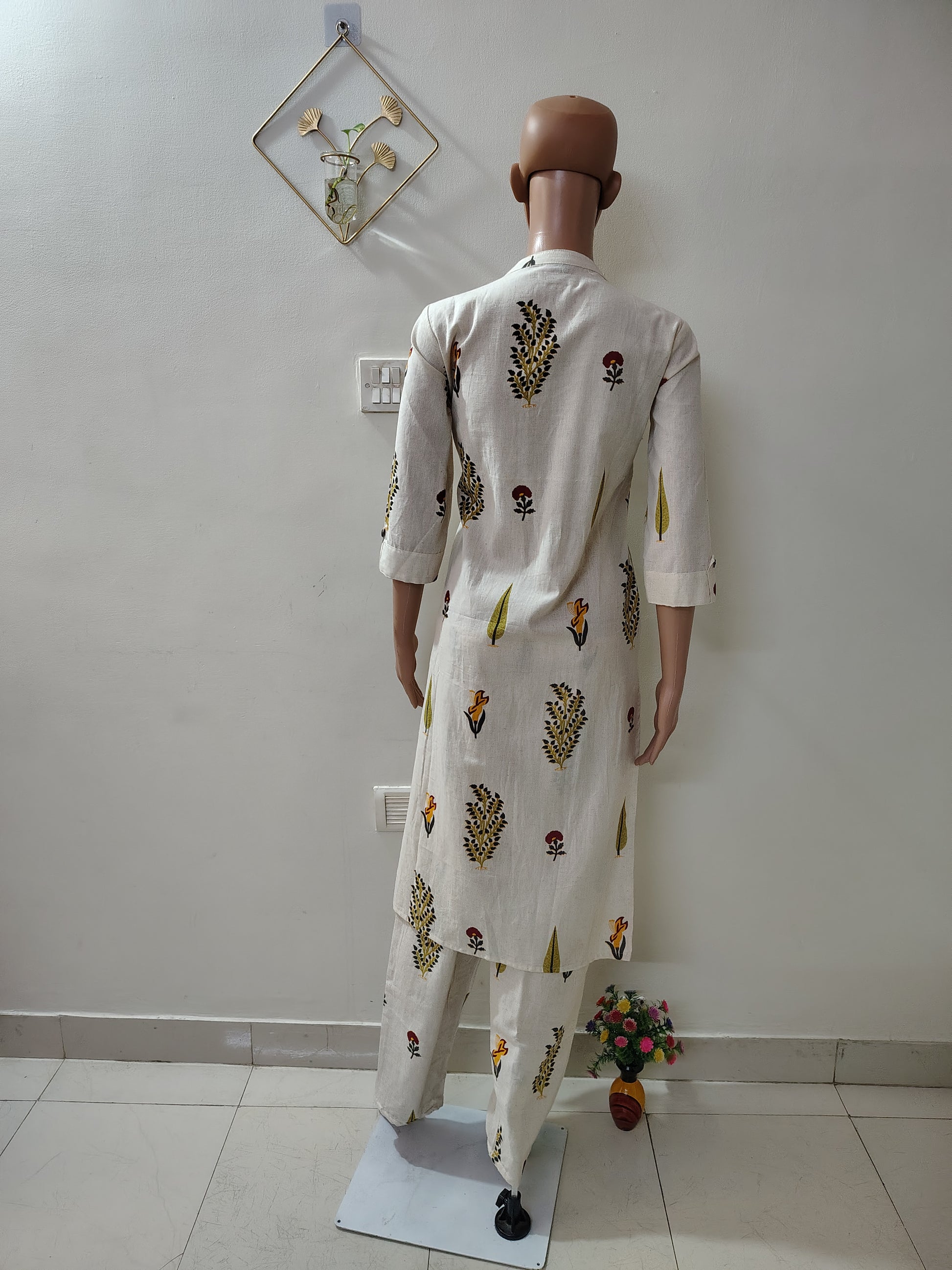 Refresh your wardrobe with this beautifully designed Off-White Printed Long Co-Ord Set, crafted for women who love simple, breathable, and stylish ethnic wear. Featuring delicate multicolor floral and leaf motifs on a soft off-white base, this Co-Ord set is perfect for office wear, daily outings, and comfortable day events.
